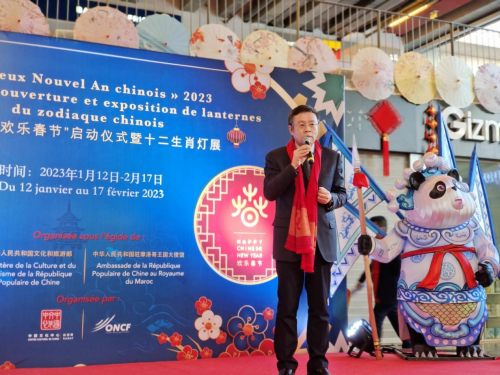 2023年1月12日,2023摩洛哥“欢乐春节”启动仪式暨十二生肖灯展开幕式在卡萨布兰卡港口火车站拉开帷幕,驻摩洛哥大使李昌林出席仪式并致辞,拉巴特中国文化中心执行主任贾李斌、摩国家铁路局遗产保护部主任沙希德、各国人民友好协会主席阿马里、摩皇家武术协会主席阿卜杜拉拉赫曼及在摩中资机构代表、华侨华人等参加活动。