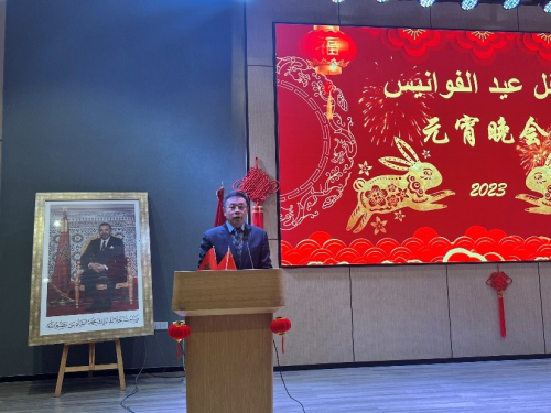 2023年1月31日,驻摩洛哥大使李昌林出席穆罕默德五世大学孔子学院在拉巴特举办的元宵晚会。穆罕默德五世大学副校长哈尼奇、使馆周志成公参、孔子学院中外方院长以及孔子学院师生和家长等约150人出席。