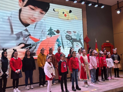 晚会现场装点着灯笼、窗花、春联、中国结等年味元素,洋溢着浓厚的新春氛围。晚会在孔院赫米萨特市艾因特·叶丁小学教学点学生演唱的中国歌曲《新年好》中拉开帷幕。孔院学生表演的太极拳和中国古典舞、志愿者老师演绎的摩洛哥歌曲《夕阳》等,充分展现出中摩两国文化魅力。孔院学生用中文演唱的《恭喜恭喜》、《恭喜发财》等中国民众耳熟能详的过年歌曲,将现场气氛推向高潮。晚会在《难忘今宵》中进入尾声,现场来宾一同合唱,唱响美美与共的祝福和期望。