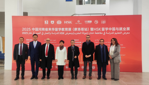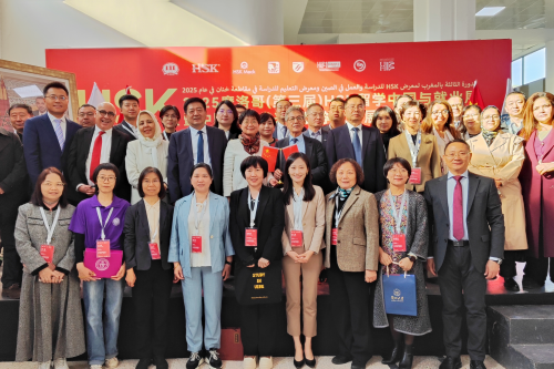 2025年12月7日,摩洛哥第三届汉语水平考试留学中国与就业展在卡萨布兰卡举行。驻摩洛哥大使余劲松、哈桑二世大学校长阿兹杜格以及汉考国际、河南省教育厅、参展高校和在摩中资企业等代表出席。