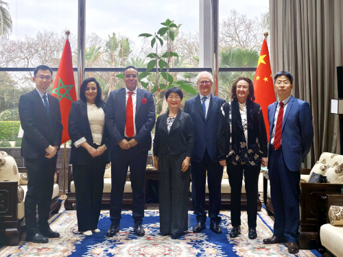 2026年4月8日,驻摩洛哥大使余劲松会见摩前驻华大使哈基姆和摩外交基金会主席哈贝克,就中摩关系进行友好交流。