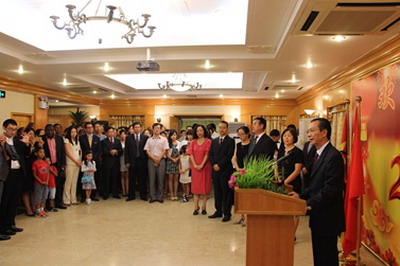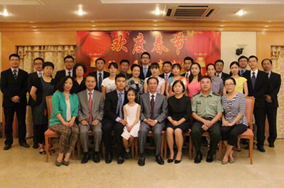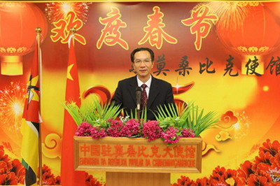 2015年2月12日,驻莫桑比克大使李春华和夫人张良琴在官邸举行2015年春节招待会。旅莫侨胞、中资企业代表、援莫专家和医疗队、孔子学院教师等200余人出席。