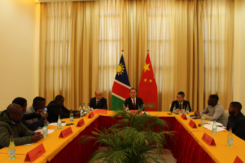 2023年6月14日,驻纳米比亚大使赵卫平在使馆举行记者招待会,纳米比亚全部九家主流媒体均派记者参加。