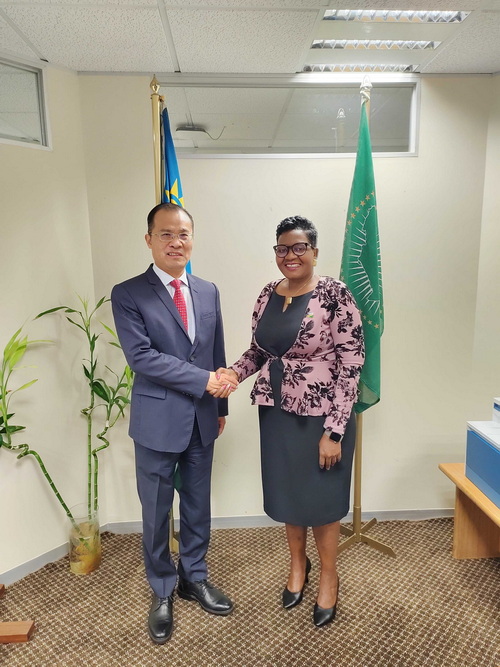 2026年4月8日,驻纳米比亚大使赵卫平拜会纳性别平等与儿童福利部长坎特马,就促进双边合作交换了意见。