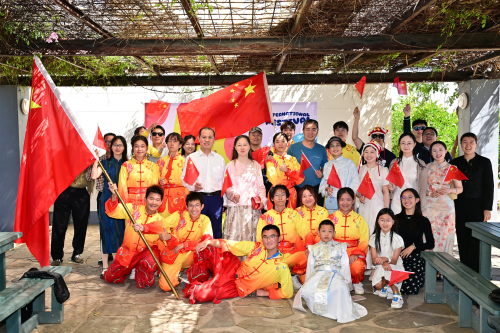义卖现场还安排了国旗游行,中国方阵最为吸睛。使馆精心排练的舞龙舞狮节目和当地学校师生表演的中国风舞蹈精彩纷呈,掀起阵阵高潮。