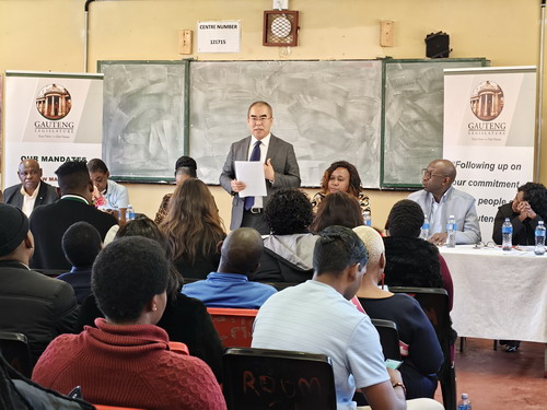 潘总领事在致辞中表示,中国和南非有着同志加兄弟的传统友谊,两国都高度重视教育。总领馆通过“涵养文化 助力教育”品牌,积极开展帮学助教活动。希望同学们努力学习,更多了解中国和中南关系,做中南友谊使者。莫苏皮耶议长和校长感谢总领馆的慷慨捐助,表示这是投资南非和两国关系未来的善举。愿积极推动两国人文交流,共促南中友好。