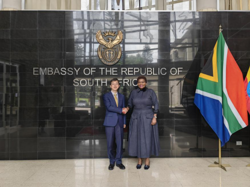 罗祝贺蒋大使履新,表示南中两国拥有高度政治互信和深厚传统友谊,在很多问题上立场相似、目标一致。习近平主席2023年对南非成功进行第四次国事访问,南中关系进入“黄金时代”。南方愿同中方继续在非盟、二十国集团和金砖等多边框架下密切沟通协作。