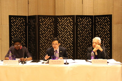2018年5月10日,中非合作论坛中方后续行动委员会秘书处与非洲国家驻华使团就2018年论坛北京峰会筹备工作举行集体磋商。会议由论坛中方后续委秘书长、外交部非洲司司长戴兵和论坛共同主席国南非驻华大使姆西曼共同主持,非洲国家驻华使团长、马达加斯加驻华大使希科尼纳等49个非洲国家驻华使节与会,非盟委员会首次派代表专程来华出席磋商。