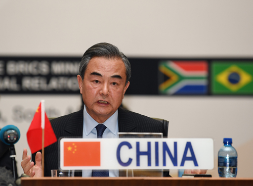 王毅表示,金砖国家在维护世界稳定、促进共同发展方面负有重要国际责任。我们要高举政治解决的旗帜,通过对话协商解决热点问题。要坚持公平正义的原则,维护国际关系基本准则。要坚定多边主义信念,加强联合国在国际事务中的中心作用。当前形势下,金砖国家应携起手来,共同应对新威胁、新挑战,既为自身发展营造稳定的环境,也为世界发展做出应有的贡献。