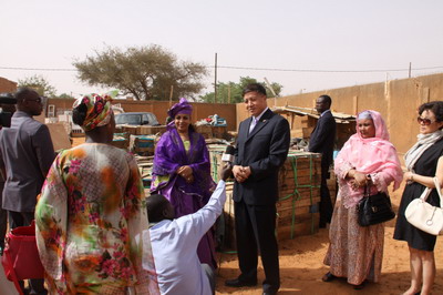 2015年3月31日,中国驻尼日尔使馆向尼“援助贫困家庭”基金会捐赠一批磨面机。驻尼日尔大使石虎夫妇、尼总统夫人玛丽嘉等出席交接仪式。