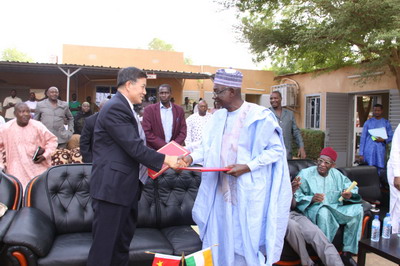 2015年4月3日,驻尼日尔大使石虎出席中国政府援尼水泵交接仪式。尼农业国务部长阿朗贝耶、公职部长沙伊布、环境部长沙伊夫等出席。