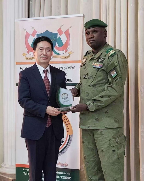 律大使宣介习近平外交思想和党的二十届四中全会精神,强调中华民族伟大复兴、全球南方群体性崛起、非洲大陆巨大发展动力为尼发展和中尼合作提供重要战略机遇。中方始终秉持真实亲诚理念和正确义利观开展对尼合作,愿与尼方加强发展战略对接,推进中非合作论坛北京峰会成果在尼落地,助力尼现代化发展。