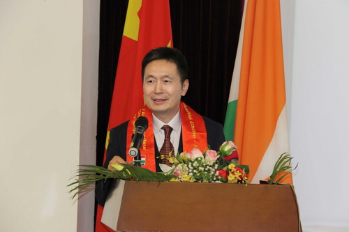 2025年10月24日,驻尼日尔大使律桂军出席使馆举办的青年科技人才交流活动,尼八个大区优秀大学生代表、大学教授等近百人出席。
