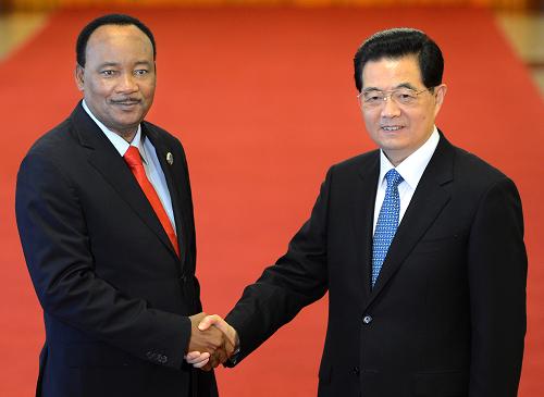 2012年7月18日上午,国家主席胡锦涛在人民大会堂同应邀来华出席中非合作论坛第五届部长级会议开幕式并访华的尼日尔总统伊素福举行会谈。