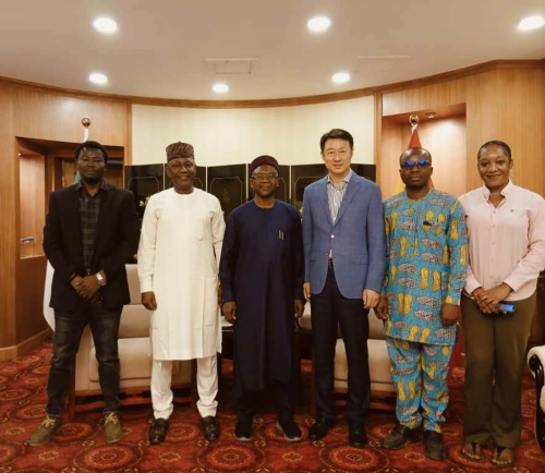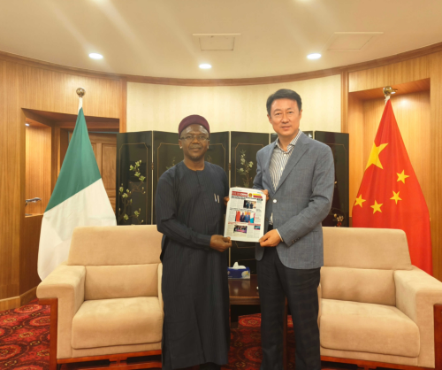 2025年11月13日,驻尼日利亚大使于敦海会见尼媒体信托集团首席执行官谢卡劳。