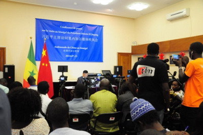 2018年7月13日,驻塞内加尔大使张迅举行新闻发布会,介绍习近平主席对塞进行国事访问相关情况。塞国家电视台、国家电台、官方报纸《太阳报》、塞通社、塞内网等20余家塞方媒体及人民日报、新华社、央视、国际台等中方媒体出席。