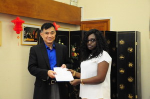 2018年8月8日,驻塞内加尔大使张迅为2018/2019学年塞内加尔中国政府奖学金生颁发录取通知书。