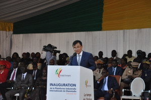 2018年11月22日,驻塞内加尔大使张迅出席迪亚姆尼亚久工业园开园仪式。萨勒总统、迪奥纳总理、工业和中小工业部长迪奥普、促进投资、合作和国家电子政务发展部长姆巴耶以及塞地方政府代表、驻塞使节等出席。