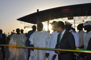 仪式开始前,张大使陪同萨勒总统视察高速公路调度中心,听取项目整体介绍,并为高速路剪彩。图巴当地数万民众自发涌上街头,热烈庆祝捷图高速顺利通车,盛赞中塞高水平合作。