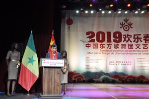 2019年2月1日,驻塞内加尔使馆在国家大剧院举办2019“欢乐春节”文艺演出。塞文化部长库里巴利、总统首席外事顾问邓巴·巴等塞政府、军方、各界友人、驻塞使节和国际组织代表,以及在塞华侨华人、援塞专家组、中资企业代表、孔子学院师生等近2000人出席。
