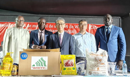 2025年9月10日,驻塞内加尔大使李志刚出席在瓦卡姆区举行的抗洪救灾物资捐赠仪式,瓦卡姆区长盖耶,蒂亚罗耶滨海区长恩迪亚耶以及塞水利和环卫部、威海市代表和两区市民代表出席。