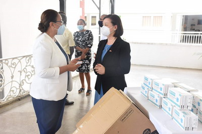 近日,驻塞舌尔大使郭玮代表塞舌尔-中国文化旅游协会向塞卫生部捐赠口罩,并代表使馆向塞卫生部和抗疫救济基金提供小额捐款。塞卫生部长维多、财政部长哈桑分别代表塞方接收。卫生部首秘瓦朗坦、卫生保健局长卢安日、公共卫生局长戈迪昂、世界卫生组织驻塞代表加库拉、塞舌尔-中国文化旅游协会代表等出席交接仪式。