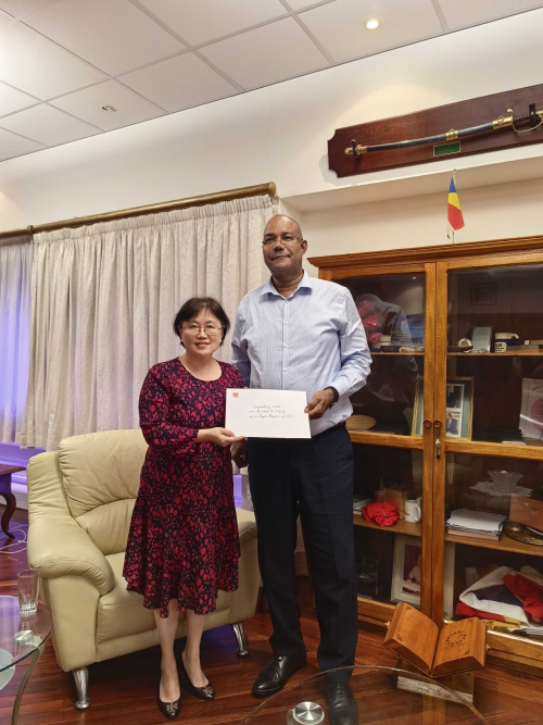2025年10月15日,驻塞舌尔大使林楠拜会塞当选总统赫米尼耶,就双边关系及共同关心议题交换意见。
