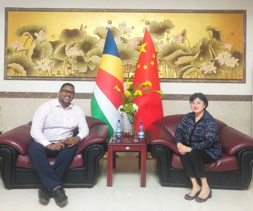2026年4月13日,驻塞舌尔大使林楠会见塞国民议会贝尔·艾尔区议员路易斯,主要就深化双边关系、加强立法机构合作等交换意见。