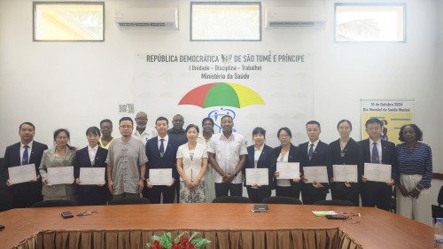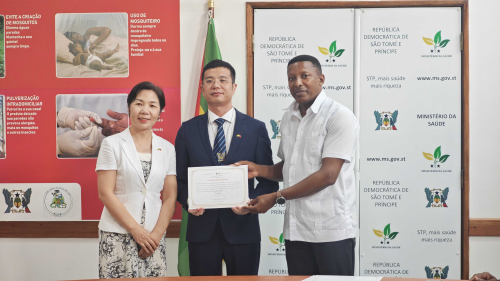 2026年3月2日,圣普卫生部向即将离任的中国援圣普第19批医疗队全体成员颁发荣誉证书,驻圣多美和普林西比大使徐迎真和圣普卫生部长马托斯共同出席颁发仪式并致辞。第19批医疗队和圣普卫生部部分官员共同出席本次活动。