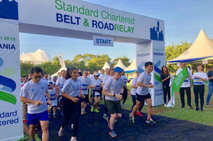 2019年4月14日,渣打银行“一带一路”全球接力跑活动在坦桑尼亚达累斯萨拉姆举行,驻坦桑尼亚大使王克率使馆工作人员、渣打银行(坦桑尼亚)高管及员工、当地民众等100余人参加活动。