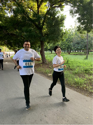 此后,王克大使同参赛选手一道参加了长跑活动,并为获胜者颁发了奖牌。