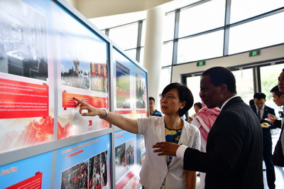 王大使还由展览中关于香港回归的图片引入,介绍了“一国两制”在香港的成功实践,揭露了近期涉港事件的事实真相和严重危害,强调中方坚决捍卫国家统一和主权完整的决心,并对坦政府公开发声,支持中方在香港问题上的关切表示感谢。