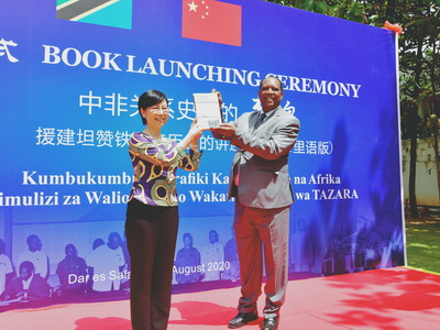 2020年8月20日,《中非关系史上的丰碑:援建坦赞铁路亲历者的讲述》斯瓦希里语版新书发布式在驻坦桑尼亚使馆隆重举行。驻坦桑尼亚大使王克、坦外长卡布迪讲话并为新书剪彩。坦前驻华大使辛博、坦赞铁路总局副局长森戈、达累斯萨拉姆大学中国研究中心主任莫希、坦矛与星出版社社长博戈亚等教育文化机构代表出席仪式。