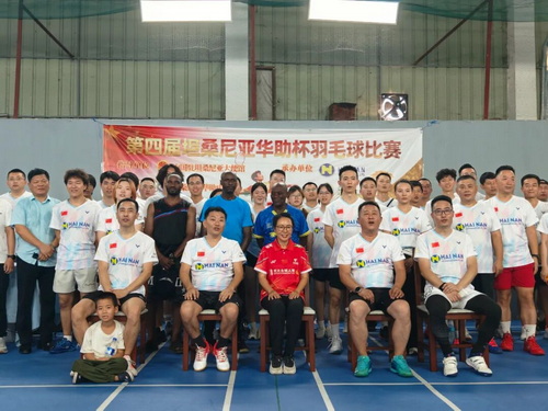 陈大使与华助中心主任冯振宇共同为比赛开球。坦侨界、中资机构、驻坦使馆及本地羽毛球爱好者将在两周内激烈角逐。
