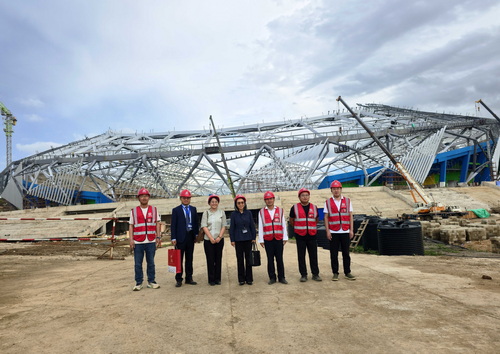 2026年3月7日,驻坦桑尼亚大使陈明健在阿鲁沙考察中铁建工承建的阿鲁沙体育场项目。