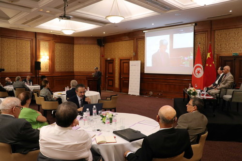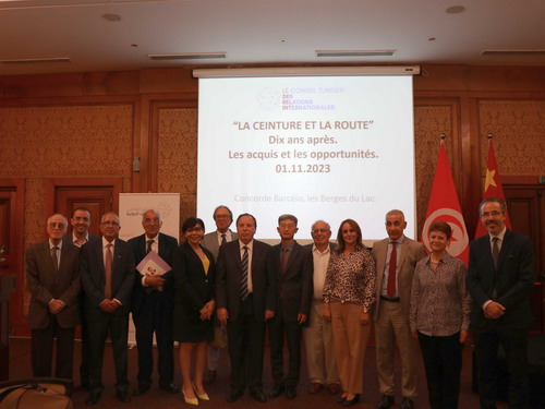 2023年11月1日,驻突尼斯大使万黎出席由使馆与突主要智库对外关系研究委员会联合举办的“‘一带一路’建设十年:成果与机遇”专题研讨会,突前外长朱海纳维、乌纳斯和各界专家学者近60人出席,国务院发展研究中心研究员丁一凡、北京师范大学“一带一路”学院执行院长胡必亮线上参会。