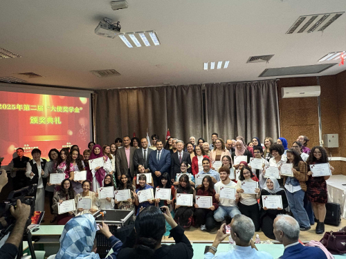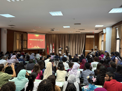 2025年11月7日,第二届“大使奖学金”颁奖仪式在迦太基大学孔子学院举行。驻突尼斯大使万黎、突教育部文化体育和社会活动司副司长艾希、突教育部外语教学司副司长卡迪贾、迦太基大学高等语言学院院长梅萨乌迪、迦太基孔子学院中方院长吴杨以及来自突尼斯5省18所开设中文课的高中近百位师生出席本次颁奖典礼。