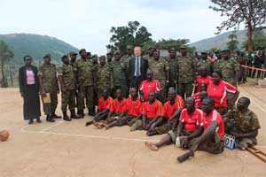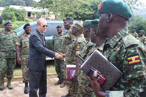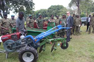 2015年7月29日,驻乌干达大使赵亚力驱车两个小时赴位于姆本德地区的乌干达国防军残疾军人培训中心参观,并为该中心捐赠生产、生活用品。乌国防军司令瓦玛拉将军陪同出席活动。