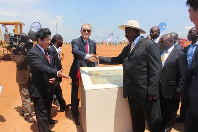 2015年8月29日,驻乌干达大使赵亚力陪同乌干达总统穆塞韦尼出席恩德培国际机场扩建项目启动仪式。乌工程交通部长比亚巴甘比、中国交通建设集团有限公司领导、中交集团乌干达分公司代表、乌中资企业代表及乌民航局领导和地方政府代表等约300人出席仪式。
