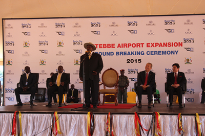 在仪式上,乌民航局董事会主席、交通工程部长和总统穆塞韦尼分别讲话,强调了机场扩建的重大意义,特别感谢中国政府通过中国进出口银行为恩德培机场扩建项目提供的优惠贷款。