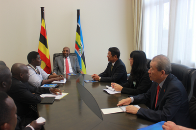 2015年9月10日,乌干达总理鲁贡达在总理办公室会见了由张建龙局长率领的中国林业局代表团。双方就林业合作领域,特别是竹子种植、人员培训等问题进行了讨论。