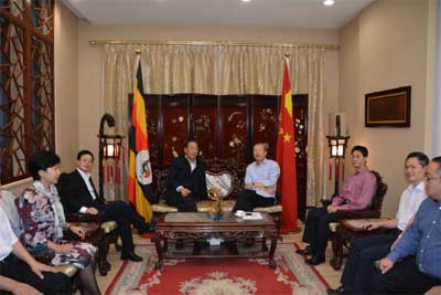 2015年12月1日,驻乌干达大使赵亚力在官邸会见了由辽宁省冮瑞副省长率领的访乌代表团。