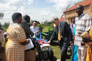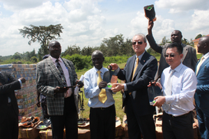 2015年12月23日,驻乌干达大使赵亚力出席中国驻乌使馆与中国水利电力对外公司(CWE)乌干达分公司为乌Kayunga大区捐赠拖拉机、三轮摩托车、锄头和床垫等物资的交接仪式。大区主席、总统特派员、区政府官员、当地百姓及在该区建设Isimba水电站的CWE乌干达分公司领导约300人出席该活动。