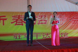 在招待会上,中资机构员工和华侨华人代表表演了精彩的文艺节目。来宾们在欢声笑语中互致新年问候,共祝祖国更加繁荣昌盛。