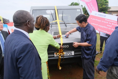 2025年11月15日,驻乌干达大使张利忠、乌工程交通部长卡通巴赴卡兰加拉岛出席由中交等在乌企业组织的捐赠活动和当地师生参与的绘画比赛,向当地社区捐赠垃圾清运车和学习用品。