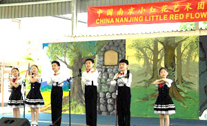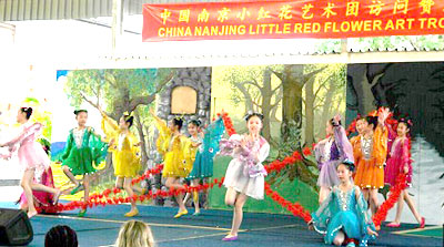 2015年4月20日至21日,由中国文化部、中国驻赞比亚使馆和赞比亚旅游与艺术部共同主办,南京小红花艺术团来赞访演,在卢萨卡国际社区学校献上两场精彩演出。赞内政部部长姆维拉、国家博物馆委员会执行秘书米辛加、卢萨卡代理市长泰姆博等政府官员、驻赞外交使团、卢萨卡国际社区学校师生和家长、在赞中资机构和华侨华人代表等近千人欣赏了演出。