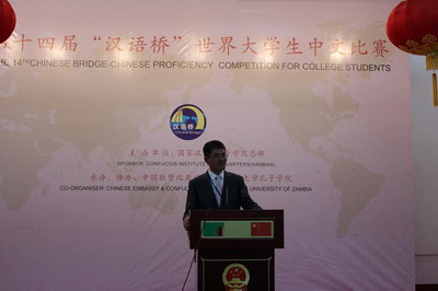 本次“汉语桥”赞比亚分赛区赛事由国家汉办/孔子学院总部主办,中国驻赞比亚使馆和赞比亚大学孔子学院承办,初赛、复赛在赞大孔子学院进行。