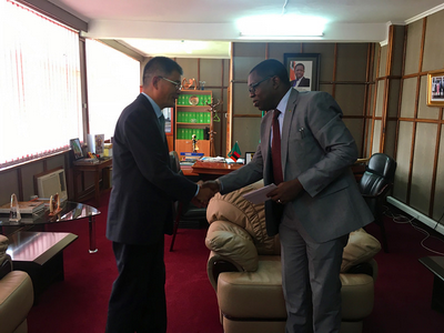 2018年4月6日,驻赞比亚大使杨优明辞行拜会赞比亚外交部长马兰吉。