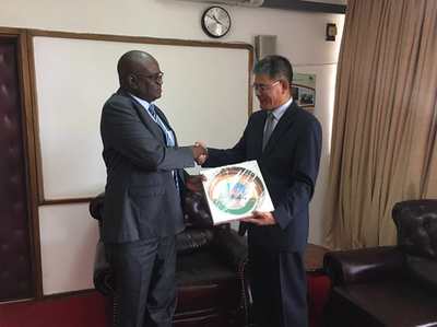2018年4月9日,驻赞比亚大使杨优明辞行拜会赞比亚国民议会议长马蒂比尼。