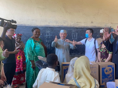 2023年2月25日,由中国乡村发展基金会、驻乍得使馆共同实施的“国际爱心包裹”项目在首都恩贾梅纳中乍友谊小学举行分发仪式。驻乍得大使王晰宁和夫人杨楠、乍国民教育部教育培训总司长尚塔尔、乍外交部亚大司司长嘉莉娅、首都恩贾梅纳第五区区长马拉、恩贾梅纳市教育代表梅达尔、华侨华人联合会和恩贾梅纳大学孔子学院代表及中乍友谊小学师生等500余人出席仪式。